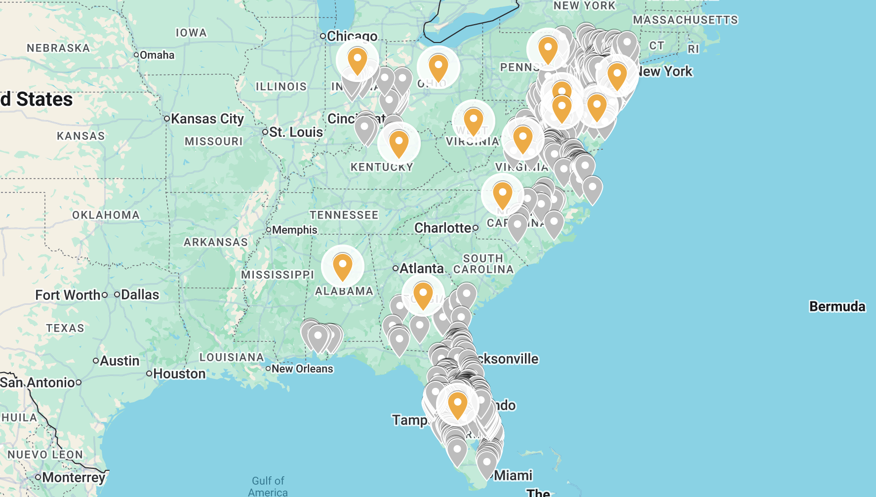 Once I had this figured out, I added this query to a pyton script, and gave the python script several "seed" data points: one for every state that Wawa is present. I chose the seeds due to some of the clusters where Wawas are located being far enough from one another that a single seed would not suffice.