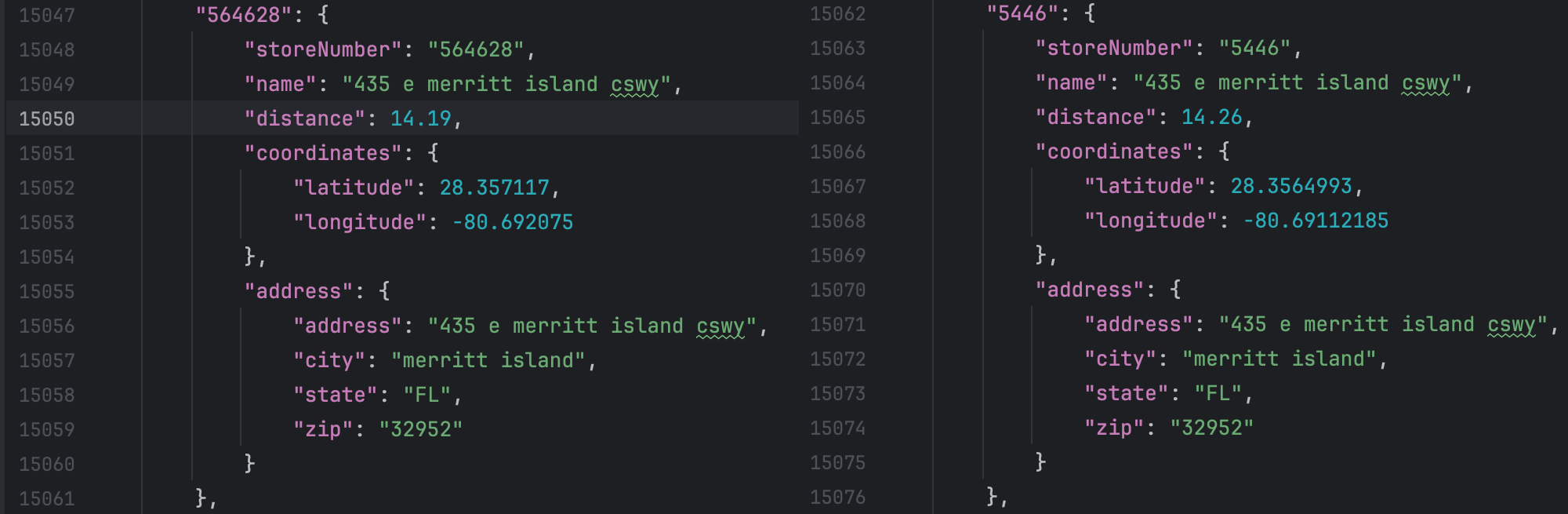 This left me with a list of 1,198 Wawa locations. However one of the results returned from this endpoint is a duplicate with an invalid identifier, so in reality we are left with a true count of 1,197 Wawa locations.